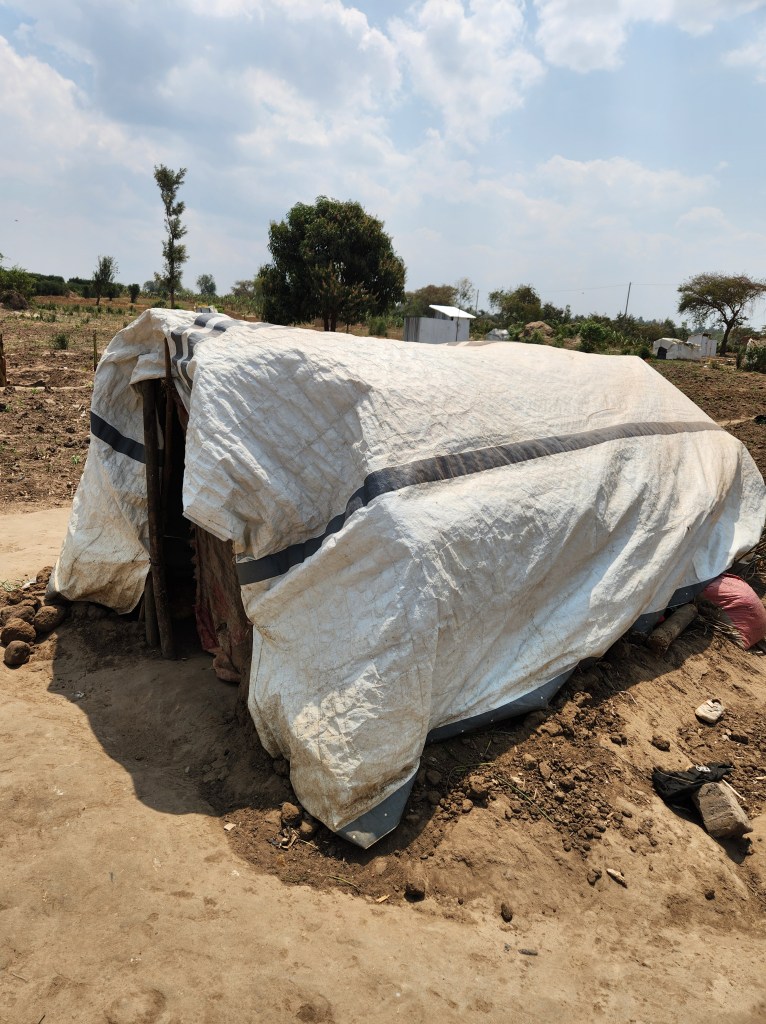 After their processing They are given a small plot of land that they will need to cultivate (hoe by hand) in order to grow their own food and build a shelter. These shelters are merely a tarp or plastic held up with a few sticks and poles. They are now basically on their own with very little help from the government or the UN.