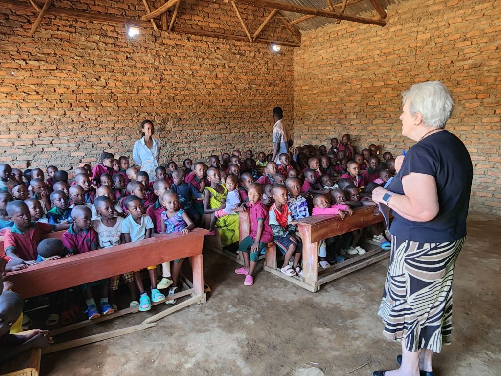 Bev spent a very hot 3 hours in 3 separate classrooms with over 80 children per class and very little ventilation. She was nearly sick by the end and very dehydrated.
