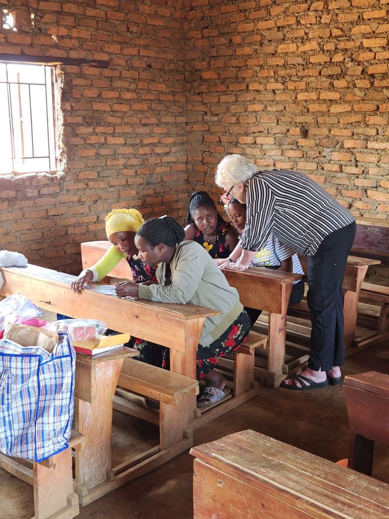 Bev is spending the day teaching the teachers a better way of teaching English to their students. The better their English, the better prospects for a job when they graduate.